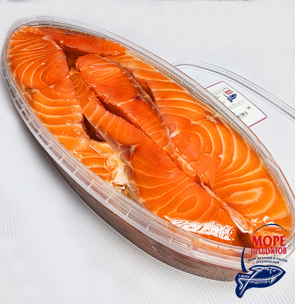 Лосось атл. ломтики крупные в масле вес 1кг.