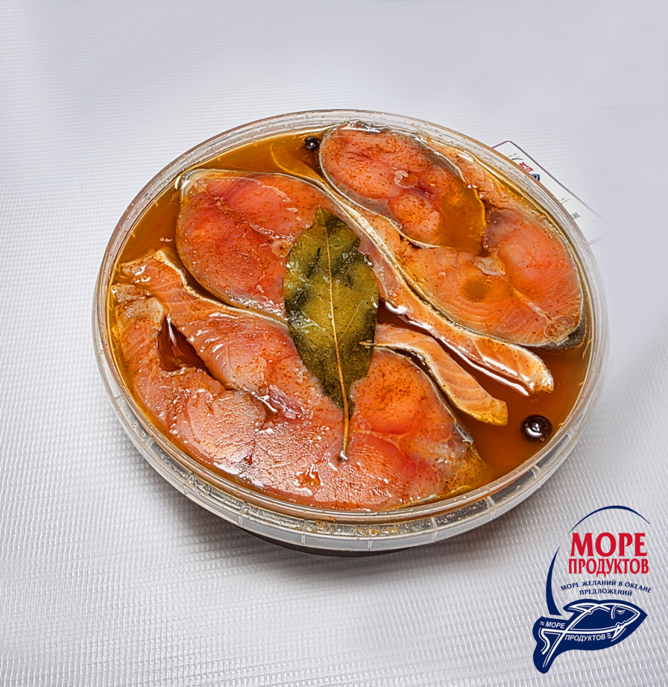 Состав: кусочки горбуши(Oncorhynchus gorbuscha), растительное масло, уксус,,соль поваренная пищевая, сахар, душистый, перец горошек, паприка красная, лавровый лист.